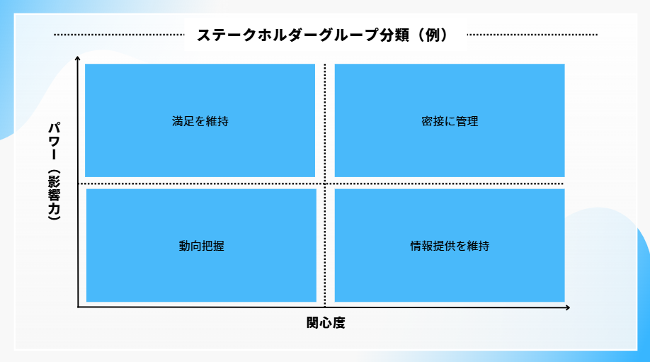 この2軸で分類されたステークホルダーは、それぞれに異なる管理アプローチが必要な4つの象限に配置されます。